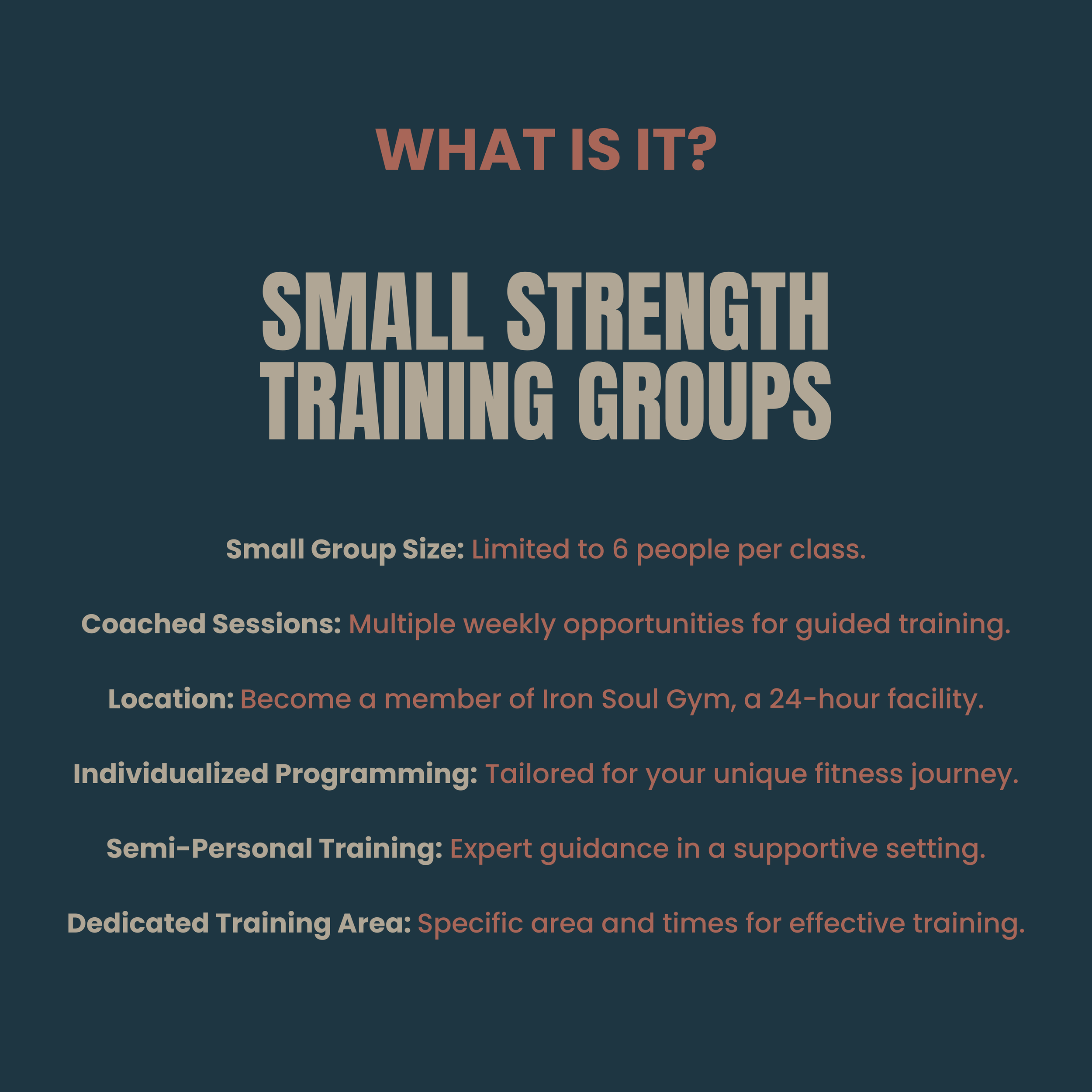 Discover the joy of teamwork as you embark on your strength journey with like-minded individuals. Our groups meet 2x/week and are intentionally limited in size, ensuring a personalized experience within 60-90 minutes.